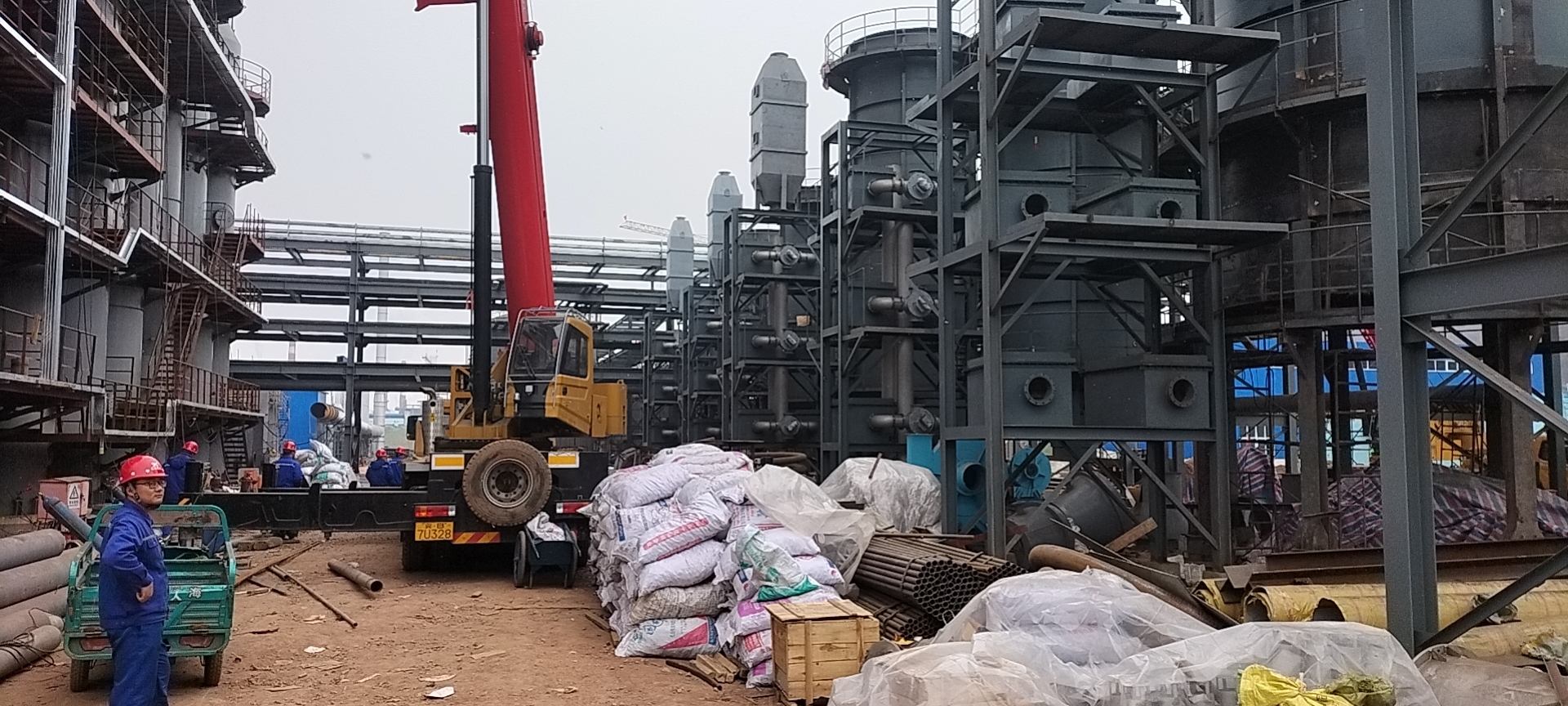 科鑫炭材料有限公司2×30萬(wàn)噸年煤焦油精深加工項(xiàng)目(一期30萬(wàn)噸年) 工程現(xiàn)場(chǎng),正在有序的施工中。